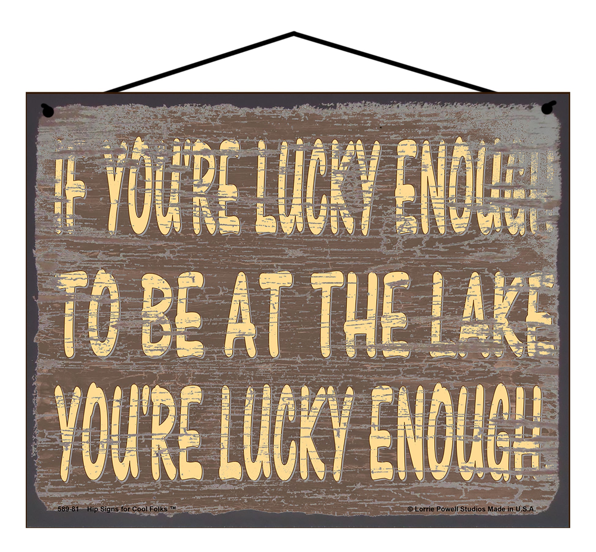 If You're Lucky Enough To Be At The Lake You're Lucky Enough - Brown Vintage Style Sign