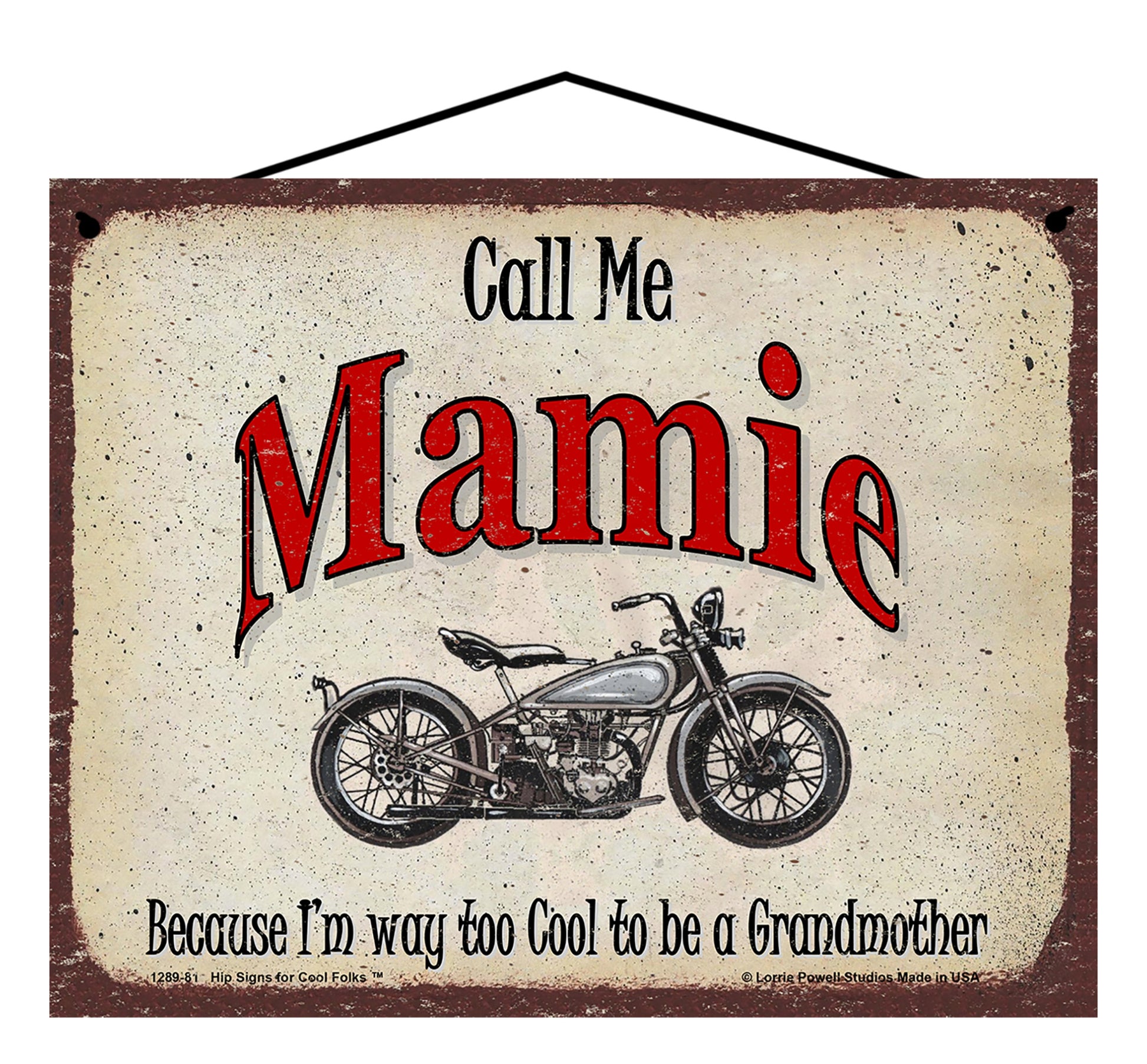 Mamie Biker Sign - Call Me Mamie Because I'm Way Too Cool To Be A Grandmother