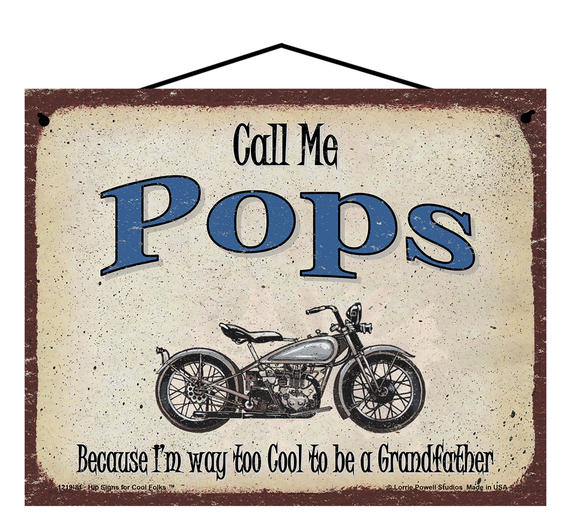 Pops Biker Sign - Call Me Pops Because I'm Way Too Cool To Be A Grandfather