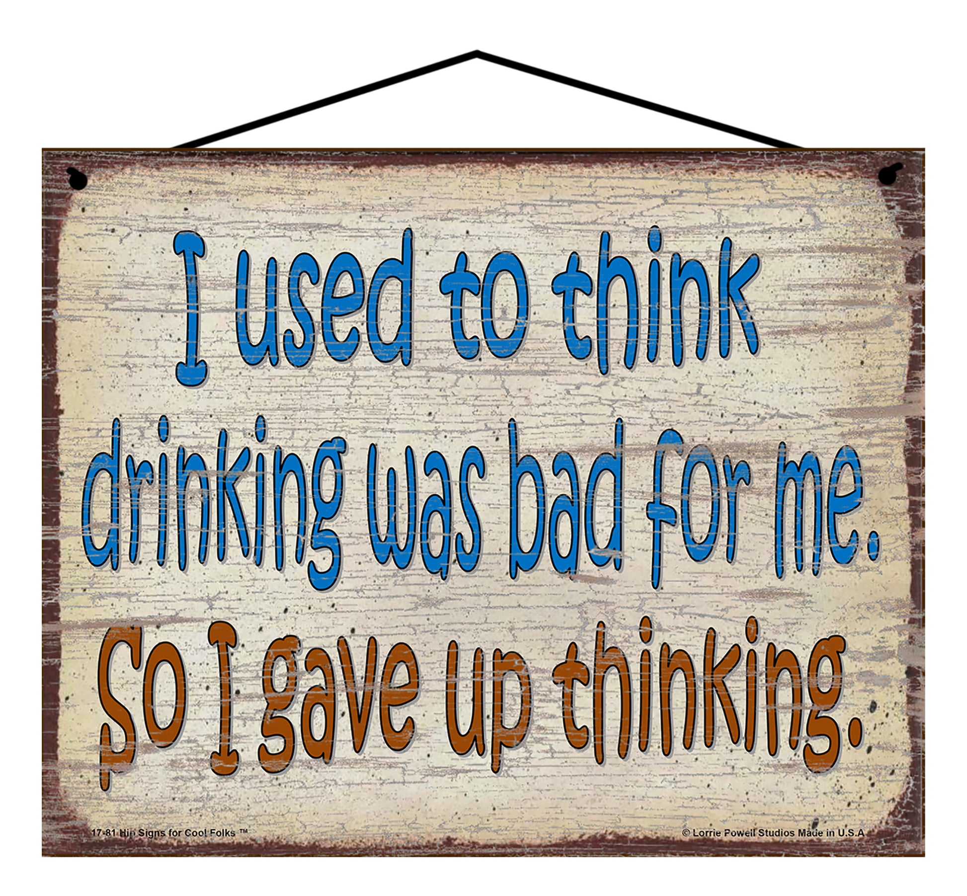 I Used to Think Drinking Was Bad for Me, So I Gave Up Thinking - Vintage Style Sign