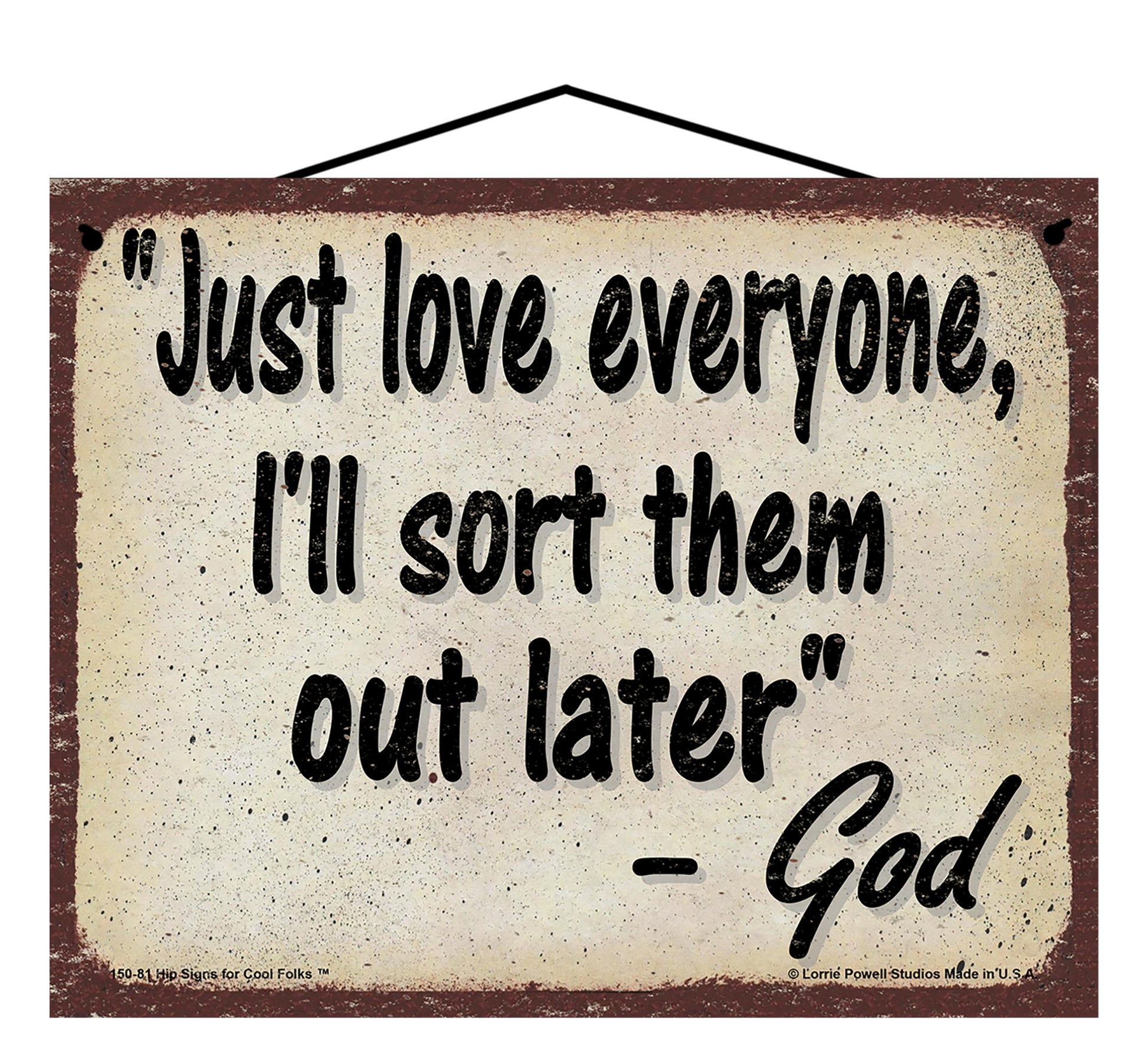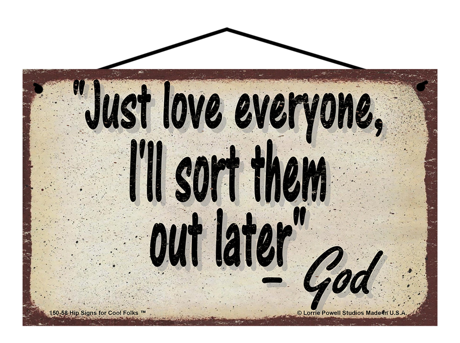 Just Love Everyone I'll Sort Them Out Later - Vintage Style God Quote Sign