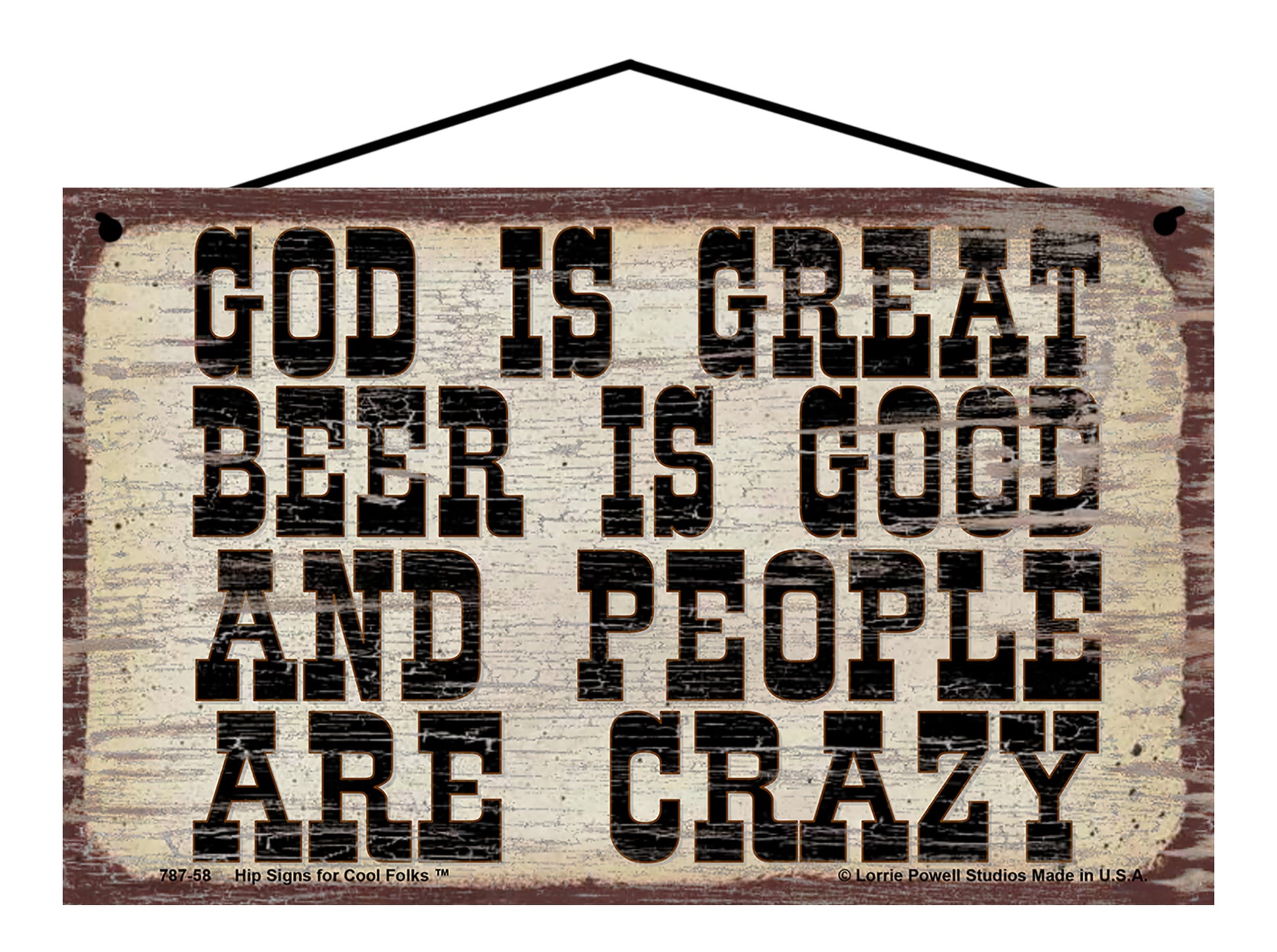 God Is Great Beer Is Good And People Are Crazy - Vintage Style Sign